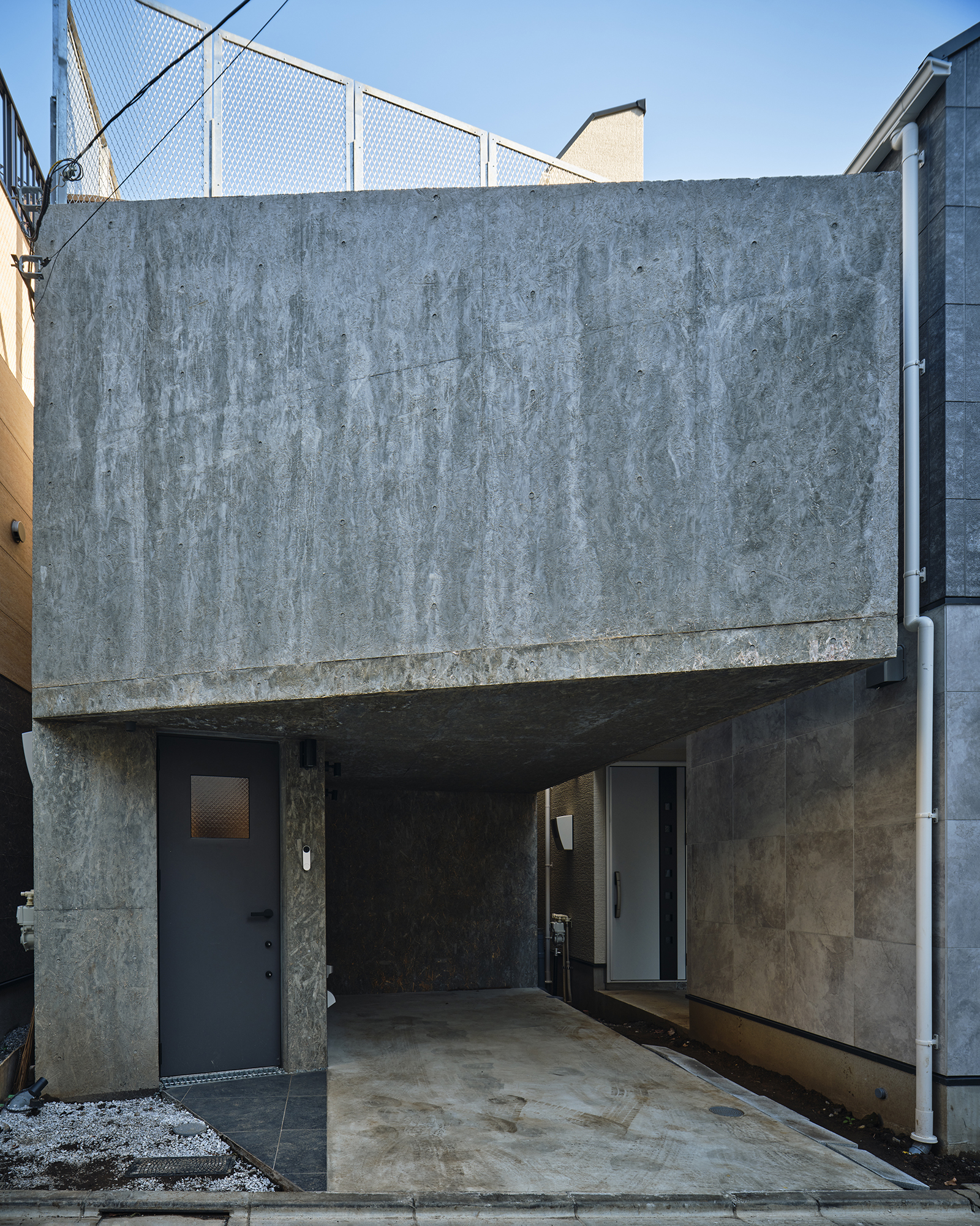 Entarance on left and parking garage on right